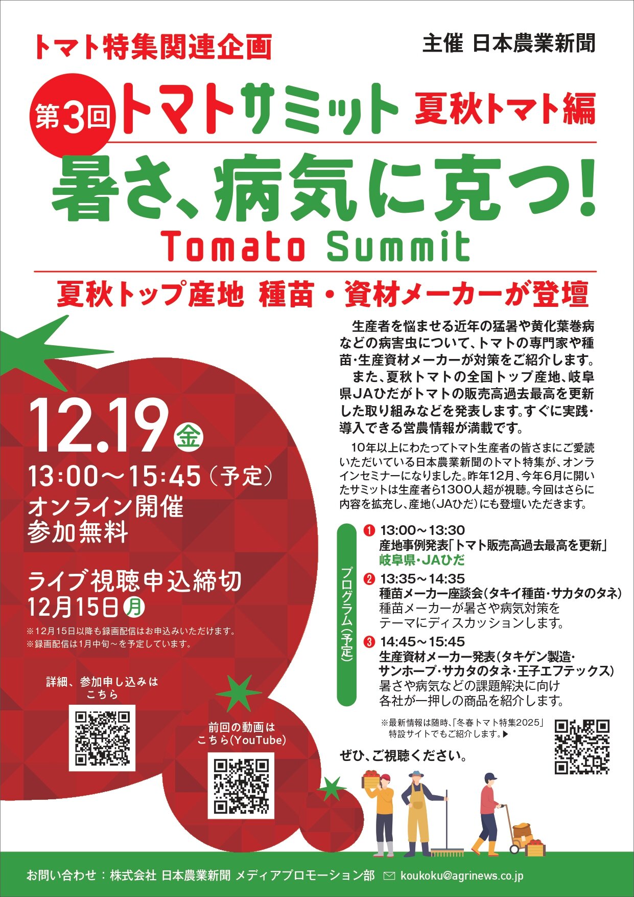 日本農業新聞が主催するオンラインイベント 「第3回トマトサミット 夏秋トマト編」 に、サカタのタネが登壇します。