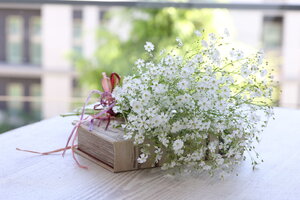 細い茎の先に小さな白い花をたくさん咲かせ、切り花、ドライフラワーとして楽しめます。耐寒性が強く、乾燥を好む育てやすい花です。