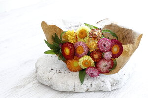 美しい光沢のある赤色や黄色などの花色で、カサカサとした独特な花びらをしています。花はドライフラワーとしても楽しめます。